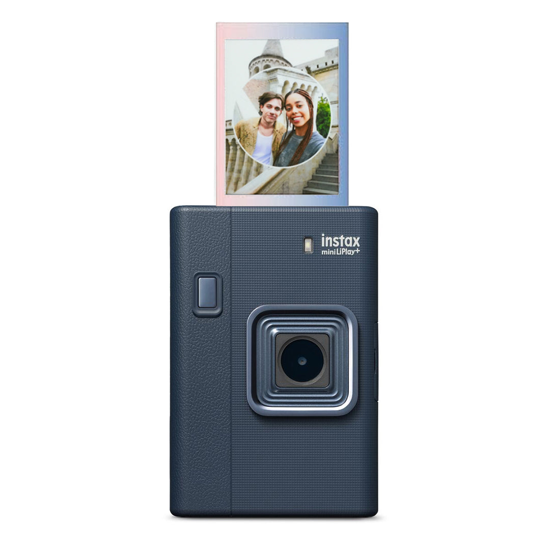Instax Mini LiPlay+ offers a selfie camera, Layered Photo Mode, hybrid instant printing, app connectivity, filters, frames, and easy click-print-share functionality.