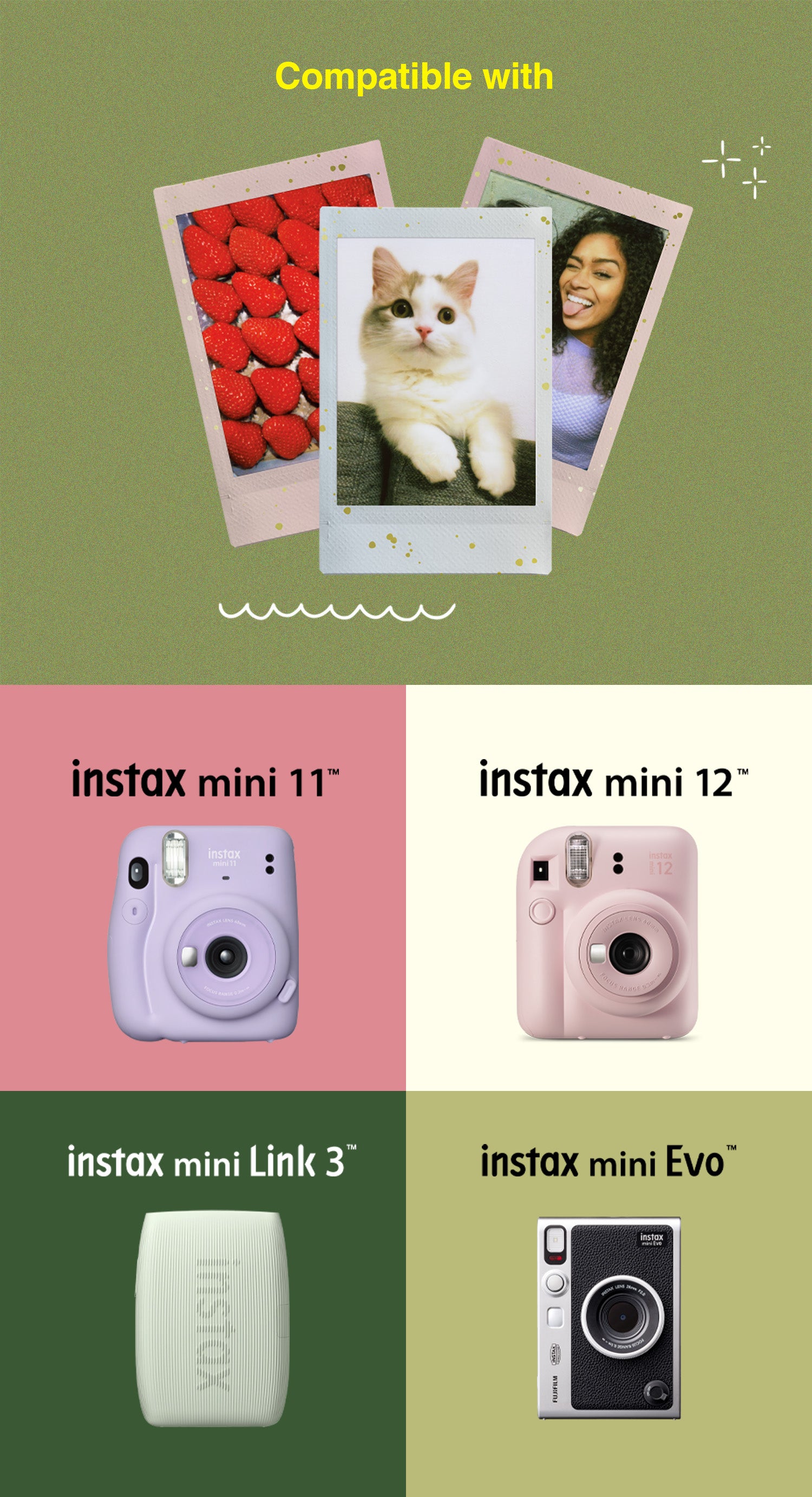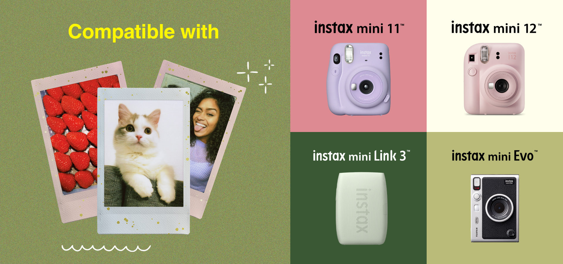 You can use instax mini films with all instax mini cameras and printers: mini 9, mini 11, mini LiPlay, mini EVO, and mini Link Printer.